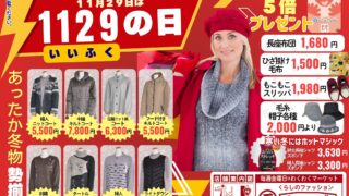 おしらせ 11/29は”いいふくの日” 11月24日(月)~30日(日)↓ デジタルチラシはこちら ↓秋冬物がハッピーカードポイント5倍でオトクにゲットできるチャンスです!コート、セーターなどの冬物ファッションをはじめ、急に寒くなって重宝する、あったか肌着のグンゼホットマジックも... 2025.11.20 おしらせ